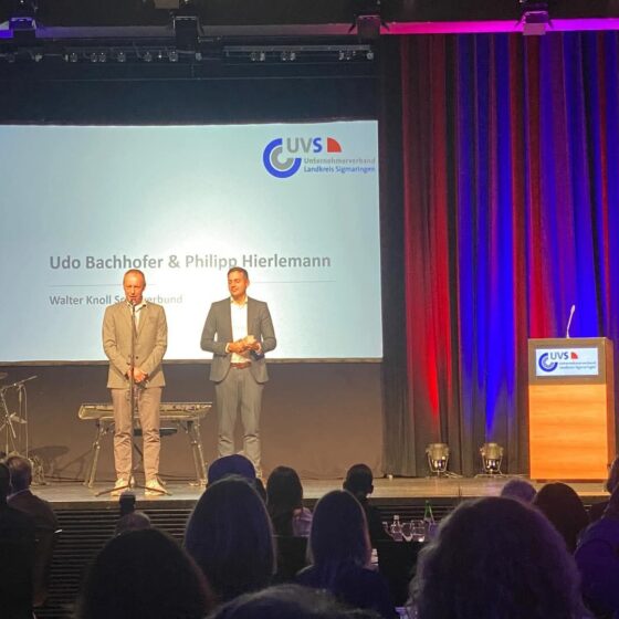 Am vergangenen Donnerstag durften wir in feierlichem Rahmen – gemeinsam mit Fürst von Hohenzollern, zahlreichen Vertretern der regionalen Wirtschaft und 160 geladenen Gästen – den Preis für Unternehmergeist des Unternehmerverbandes Sigmaringen (UVS) entgegennehmen.