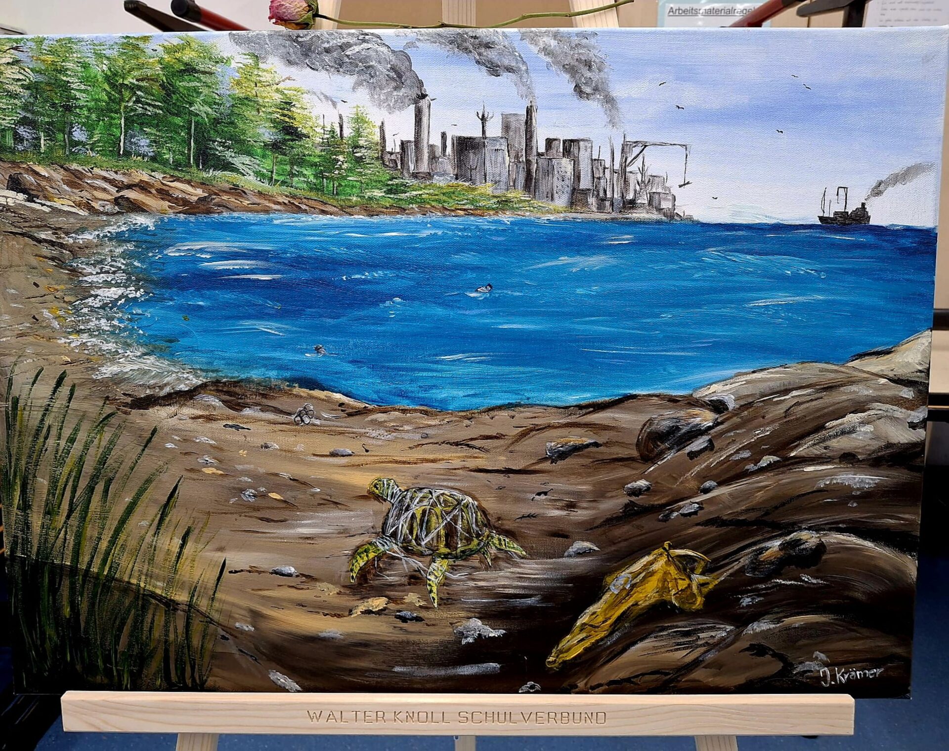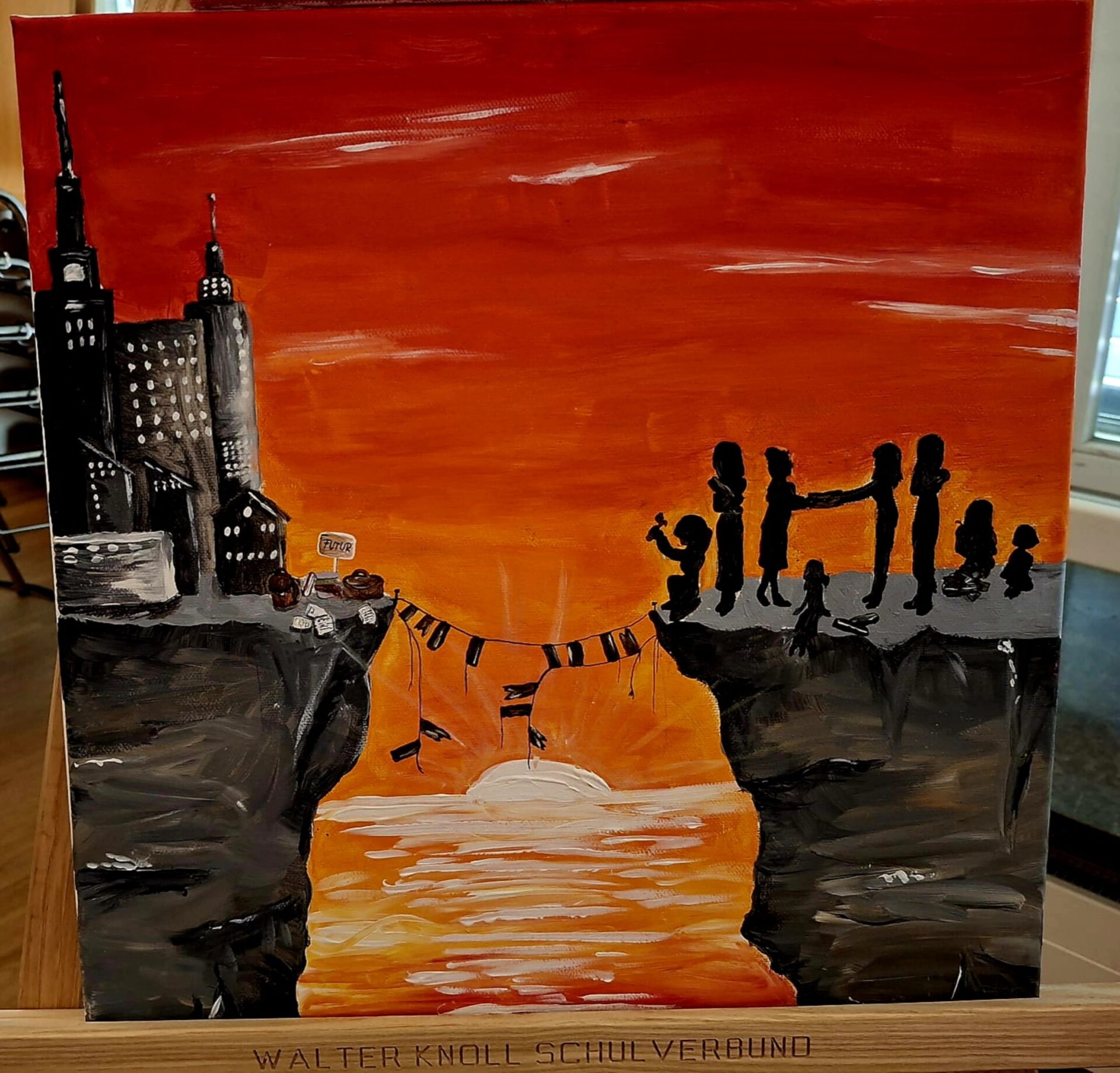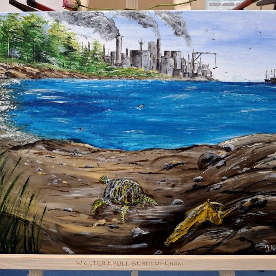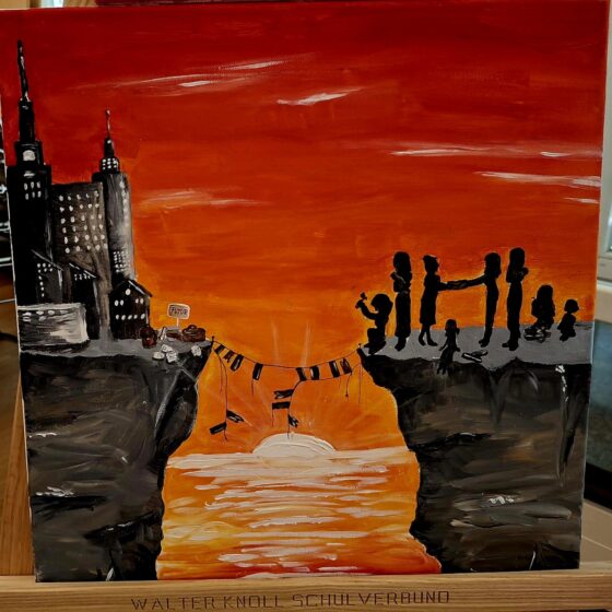 Auch in diesem Jahr wurde am Walter Knoll Schulverbund von Schülerinnen und Schülern wieder ein besonderes Zeichen für Kreativität und Gemeinschaft gesetzt: Die zweite Ausstellung der Kunst-AG knüpfte an den Erfolg des Vorjahres an und überzeugte mit noch größerer Vielfalt. Unter dem Motto „Aus einer anderen Perspektive“ setzten sich die beteiligten Schülerinnen und Schüler intensiv mit neuen Blickwinkeln auseinander. Ihre Werke luden dazu ein, sich unter anderem in bislang fremde Lebensrealitäten hineinzuversetzen – sei es in die Welt eines wohlhabenden Nachbarn oder in die eines Bettlers vor dem Supermarkt.