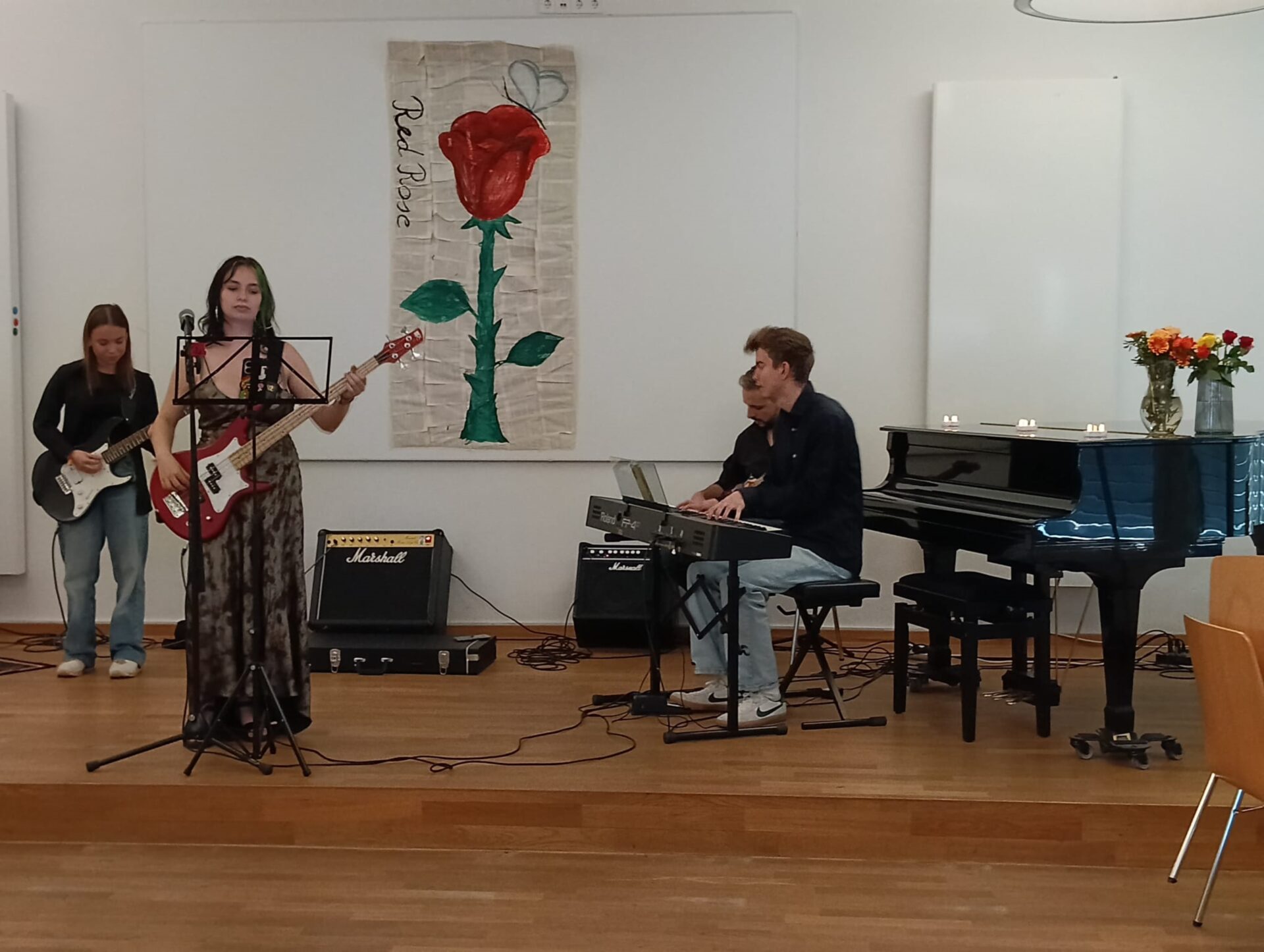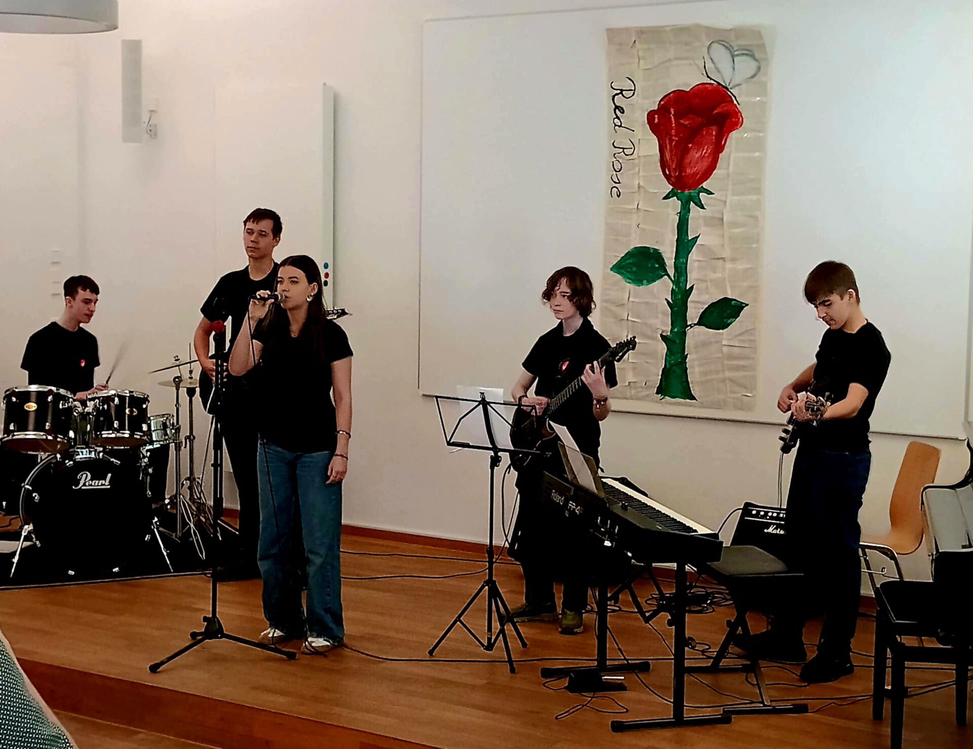 Organisiert wurde die Veranstaltung von den Initiatorinnen Selena und Emily aus der Klasse R9a. Mit großem Engagement und viel Herzblut gelang es ihnen, gemeinsam mit der Kunst-AG ein abwechslungsreiches Programm auf die Beine zu stellen. Neben den Kunstwerken sorgten eine Getränkebar, ein Buffet sowie die musikalische Begleitung durch die Städtische Musikschule Bad Saulgau und das Soundwerk Bad Saulgau für eine stimmungsvolle Atmosphäre.