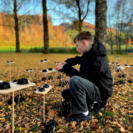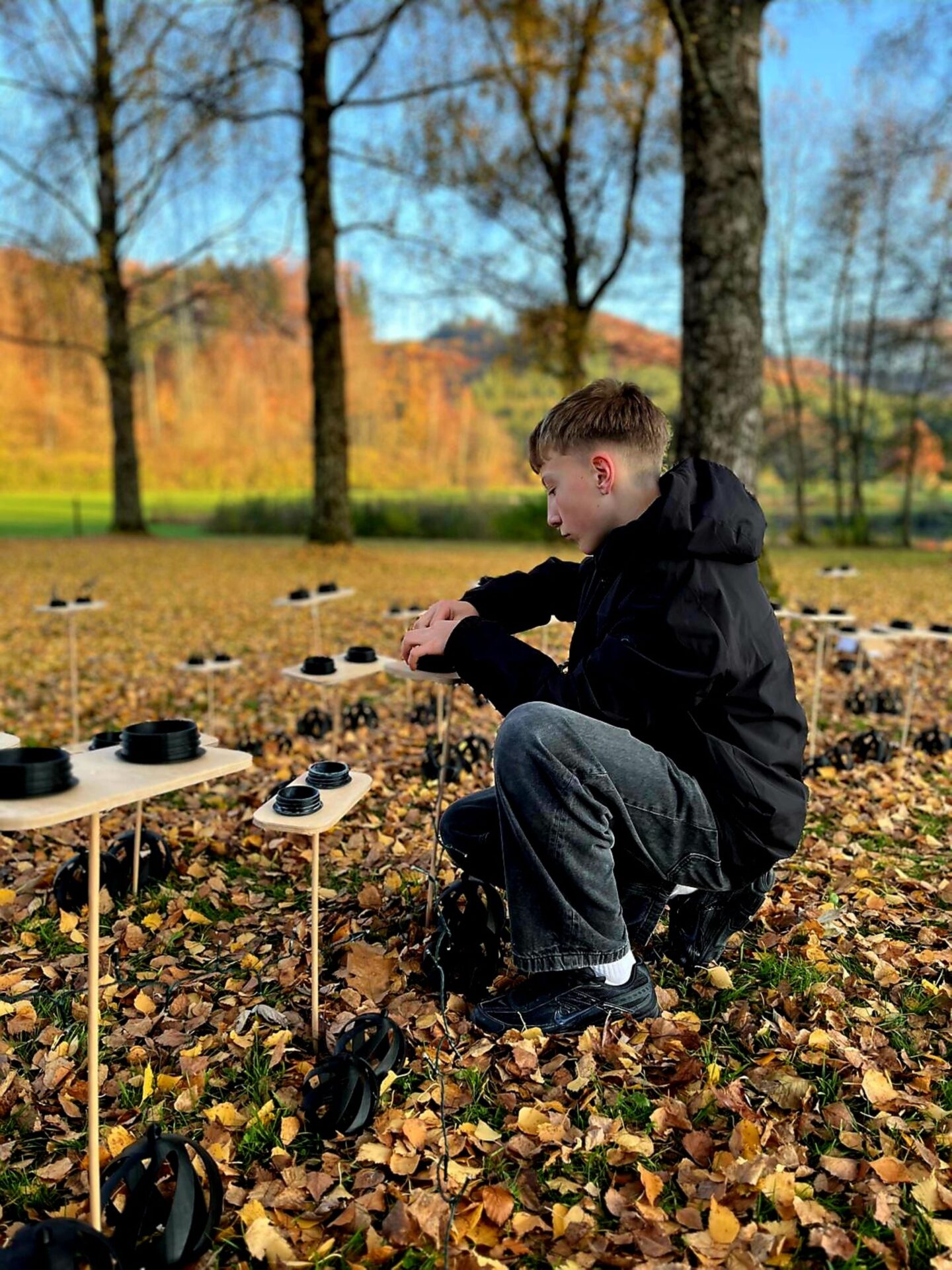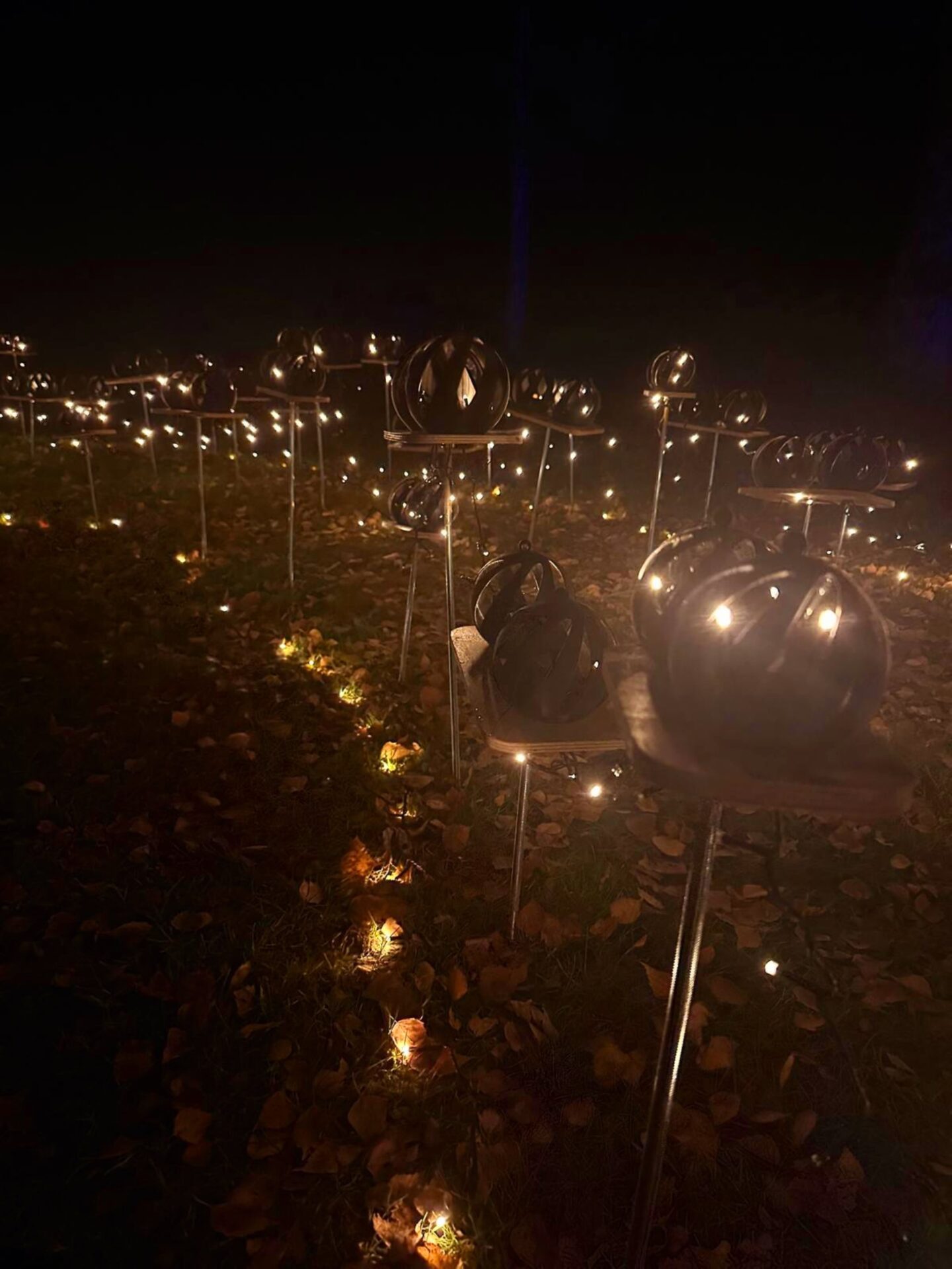 Organisatorisch leitete Kunstlehrerin Anne Riedle das Projekt, als Techniklehrer unterstützte Simon Heppner den Bau der Befestigungen. Gemeinsam fertigten die Schülerinnen und Schüler 50 Befestigungsplatten: zugeschnitten, abgerundet, gebohrt, lasiert und mit Stäben in unterschiedlichen Höhen ausgestattet, um ein poetisches Wellenspiel im Lichtermeer zu erzeugen.
