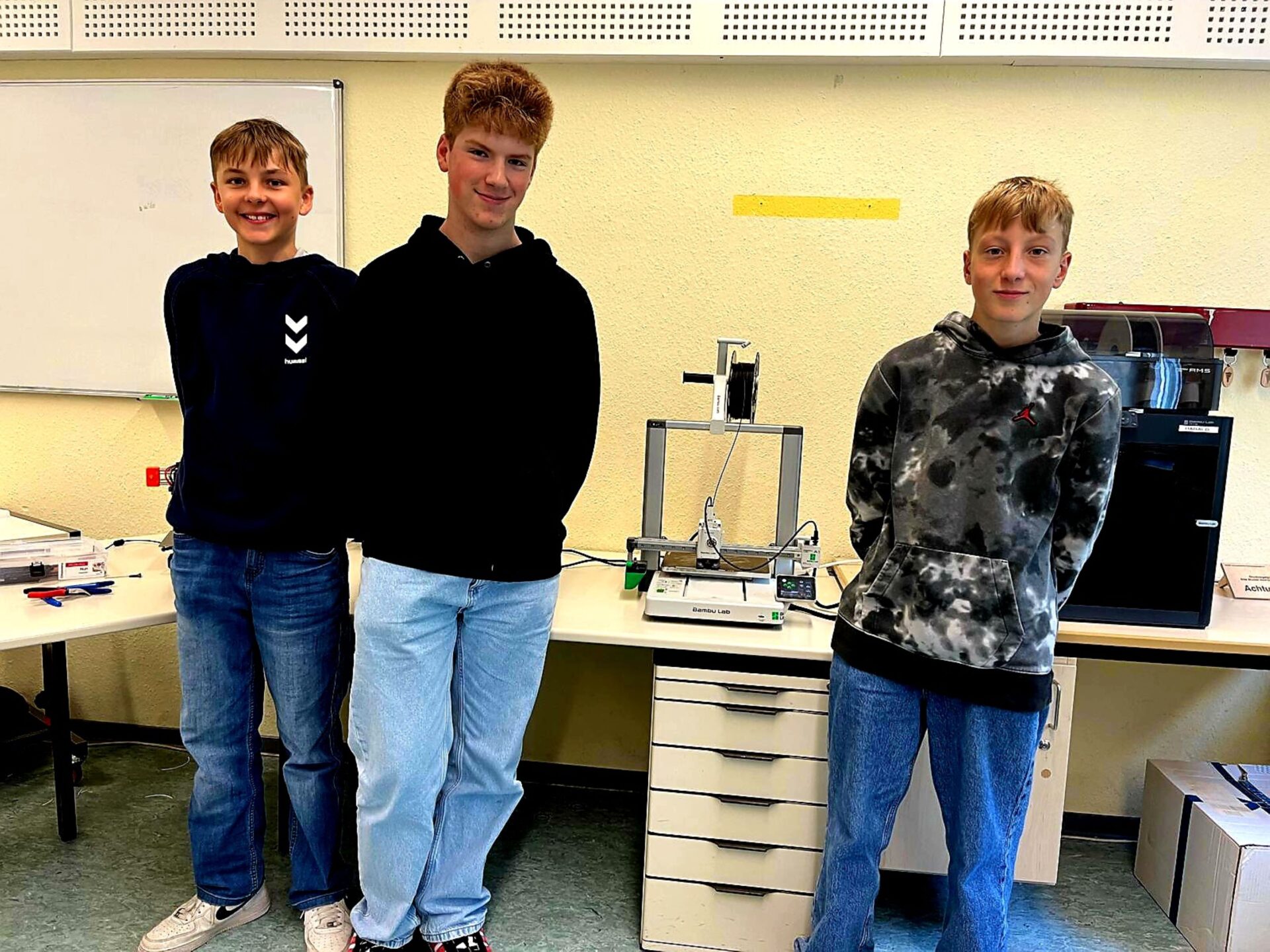 Als festes Projektteam starteten zu Beginn des Schuljahres die Schülerinnen und Schüler Timo Schirmer, Marcel Veil, Arthur Maluhin, Max Müller (alle R8c) sowie Alessio Wolfer (R9a). In vielen Stunden wurden fast 100 Kugeln sowie die passenden Gewinde programmiert und gedruckt. Die Druckvorgänge ließen sich dank Kamerasteuerung jederzeit überwachen – jeder freie Moment im AG-Raum wurde genutzt, auch in den Herbstferien. Ein Druckvorgang ermöglicht das gleichzeitige Drucken von vier Kugeln und dauert rund zehn Stunden.
