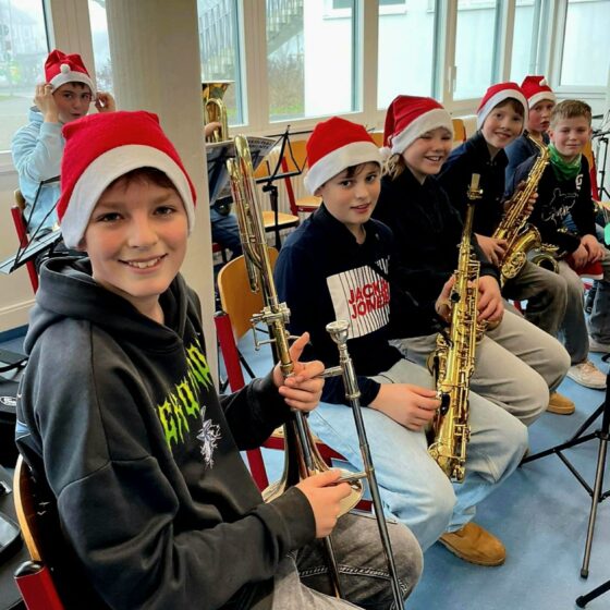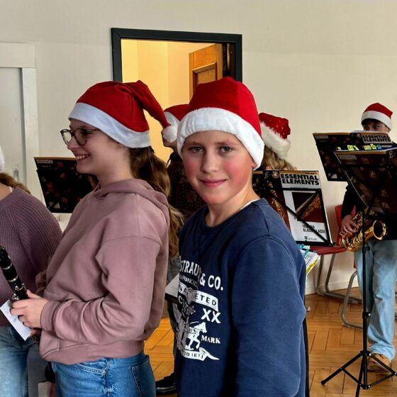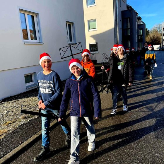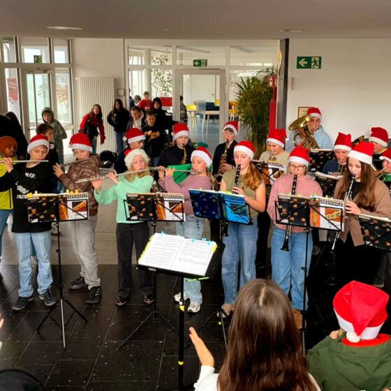 Am Nachmittag ging es dann weiter zum traditionellen Nikolausauftritt in der Aicher-Scholl-Schule. Auch hier gelang es der Bläserklasse, ihr Publikum auf eine stimmungsvolle musikalische Reise durch die Vorweihnachtszeit mitzunehmen. Es wurde begeistert zugehört, mitgeklatscht und sogar mitgesungen – ein Zeichen dafür, wie sehr die Musik die Zuhörerinnen und Zuhörer erreichte.