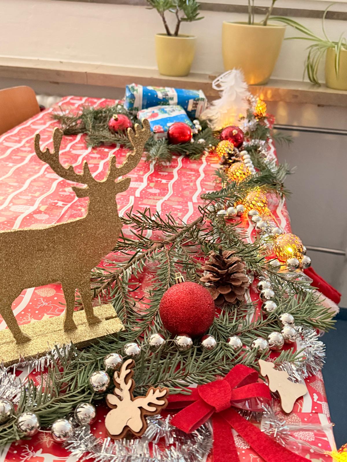 Die Schülerinnen und Schüler ließen ihrer Kreativität freien Lauf: Selbstgebastelte Dekorationen, individuell gestaltete Christbaumkugeln, festlich verpackte Tische, stimmungsvolle Beleuchtung und sogar selbst gespielte Weihnachtsmusik sorgten für eine ganz besondere Atmosphäre in den Lernräumen. Jeder Raum spiegelte die Begeisterung und den Ideenreichtum seiner Klasse wider.